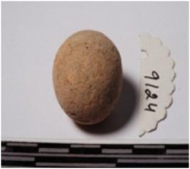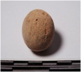 | Description / विवरण | A terracotta sling ball round in shape of smooth surface. |