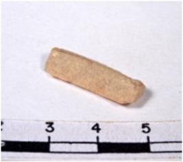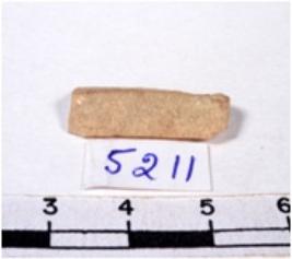 | Description / विवरण | A fragment of a rectangular shaped chert blade showing dorsal sides with sharp cutting edges having smooth surface and triangular section. |