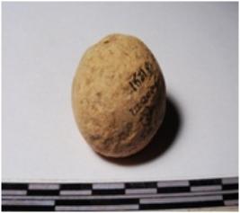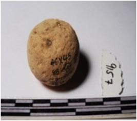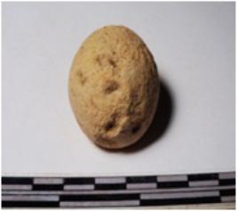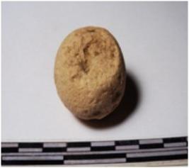 | Description / विवरण | A terracotta sling ball round in shape of smooth surface. |