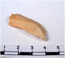 | Description / विवरण | A fragment of a rectangular shaped chert blade showing dorsal sides with sharp cutting edges having smooth surface and triangular section. |