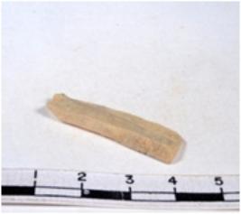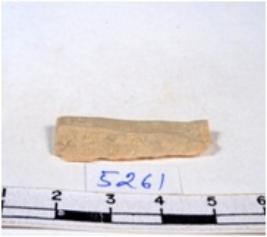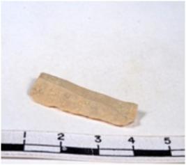 | Description / विवरण | A fragment of a rectangular shaped chert blade showing dorsal sides with sharp cutting edges having smooth surface and triangular section. |