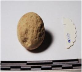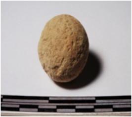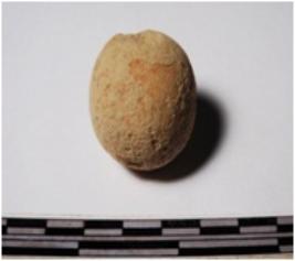 | Description / विवरण | A terracotta sling ball round in shape of smooth surface. |
