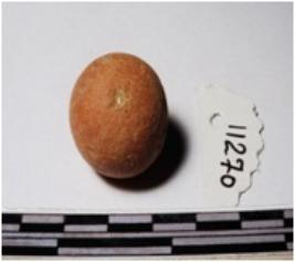 | Description / विवरण | A terracotta round in shape sling ball of smooth surface. |