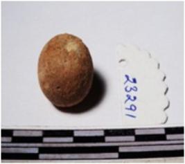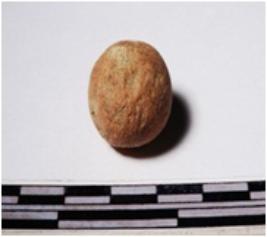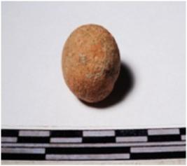 | Description / विवरण | A terracotta sling ball round in shape of smooth surface. |