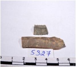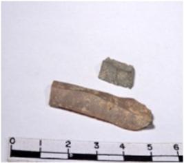 | Description / विवरण | A fragment of a rectangular shaped chert blade showing cutting edges having smooth surface and triangular section. |