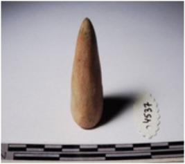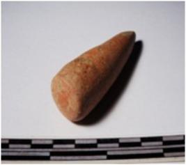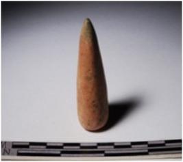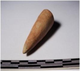 | Description / विवरण | A terracotta cone, pointed one end, circular in section of smooth surface. |