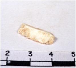 | Description / विवरण | A fragment of a rectangular shaped chert blade showing dorsal sides with sharp cutting edges having smooth surface and uneven section. |
