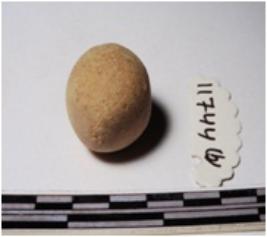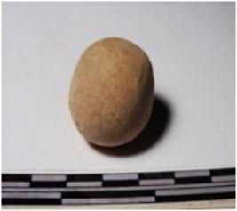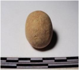 | Description / विवरण | A terracotta round in shape sling ball of smooth surface. |