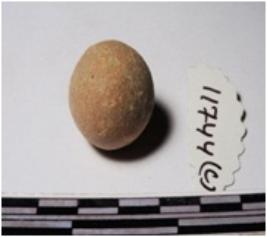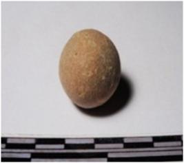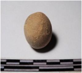 | Description / विवरण | A terracotta round in shape sling ball of smooth surface. |