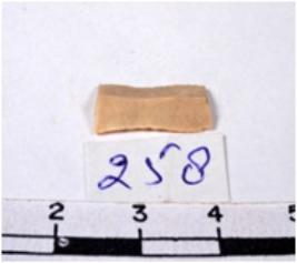 | Description / विवरण | A chert buff coloured broad parallel sided blade. Its both ends are truncated; both margins, battered by use, retouching is evident, trangular section. |