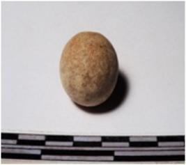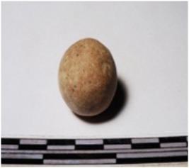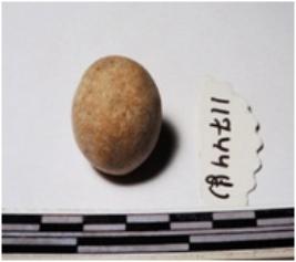 | Description / विवरण | A terracotta round in shape sling ball of smooth surface. |