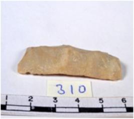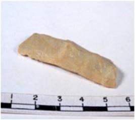 | Description / विवरण | Brownish some what paralleled multiple ribed with marks of secondary flaking. One end is truncated whereas another is convex and blunted edged. A short incipient shoulder is produced at truncated end. Plateform of percussion visible. Trapezoidal section. |