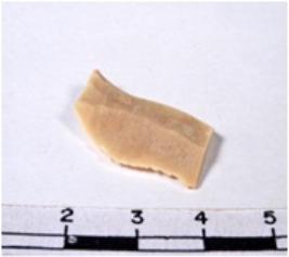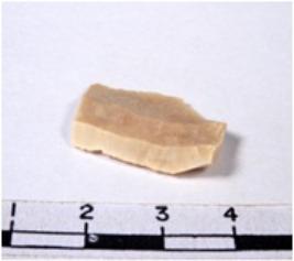 | Description / विवरण | A fragment of a rectangular shaped chert blade showing dorsal sides with sharp cutting edges having smooth surface and oval like section. |