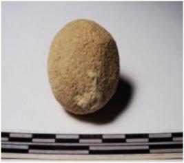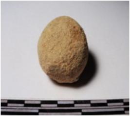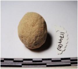 | Description / विवरण | A terracotta round in shaped sling ball of rough surface. |