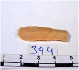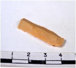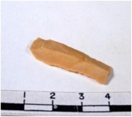 | Description / विवरण | A fragment of a rectangular shaped chert blade showing dorsal sides with sharp edges having smooth surface and uneven section. |