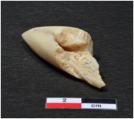 | Description / विवरण | A small sized of shell point showing conical in shaped, pointed on one end, broken from upper part, having smooth surface. |