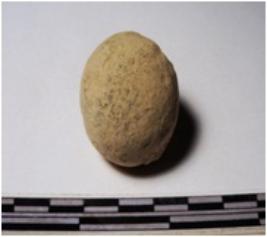 | Description / विवरण | A terracotta round in shaped sling ball of rough surface. |