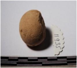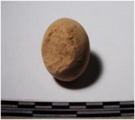 | Description / विवरण | A terracotta sling ball round in shape of smooth surface. |