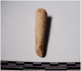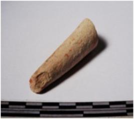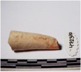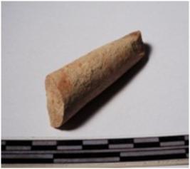 | Description / विवरण | A fragment of a terracotta cone, broken pointed end, circular in section of smooth surface. |
