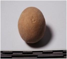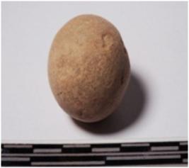 | Description / विवरण | A terracotta sling ball round in shape of smooth surface. |