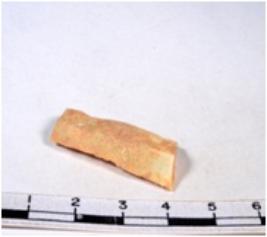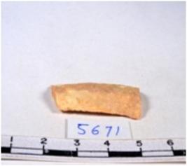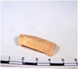 | Description / विवरण | A fragment of a rectangular shaped chert blade showing dorsal sides with sharp cutting edges having smooth surface and triangular section. |