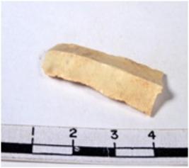 | Description / विवरण | A fragment of a rectangular shaped chert blade showing dorsal sides with sharp cutting edges having smooth surface and uneven section. |