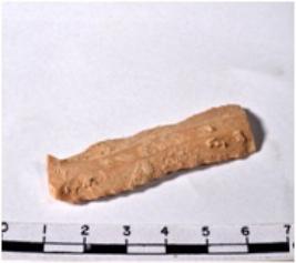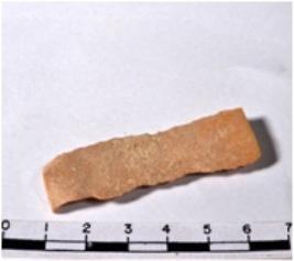 | Description / विवरण | A fragment of a rectangular shaped chert blade showing dorsal sides with sharp cutting edges having smooth surface and triangular section. |