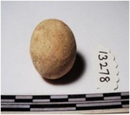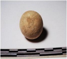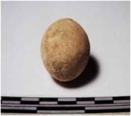 | Description / विवरण | A terracotta sling ball round in shape of rough surface. |