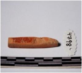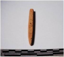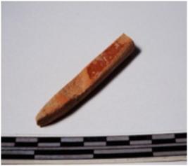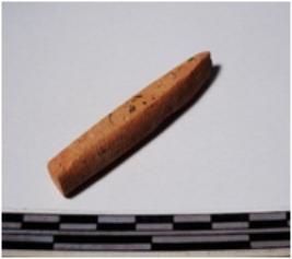 | Description / विवरण | A fragment of a terracotta point, pointed one end, square in section of smooth surface. |