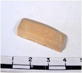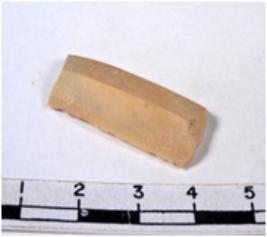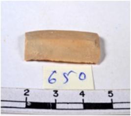 | Description / विवरण | A fragment of a rectangular shaped chert blade showing parallel sides with sharp edges having smooth surface and triangular section. |