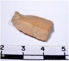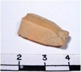 | Description / विवरण | A fragment of a rectangular shaped chert blade showing flat sides with sharp edges having smooth surface and oval like section. |