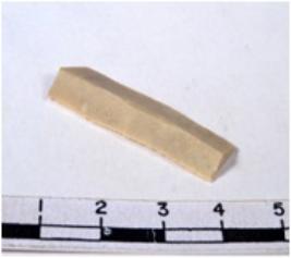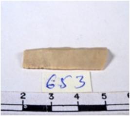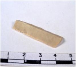 | Description / विवरण | A fragment of a rectangular shaped chert blade showing dorsal sides with sharp cutting edges having smooth surface and uneven section. |
