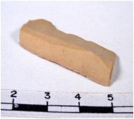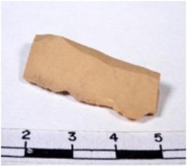 | Description / विवरण | A fragment of a rectangular shaped chert blade showing dorsal sides with sharp cutting edges having smooth surface and triangular section. |