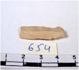 | Description / विवरण | A fragment of a rectangular shaped chert blade showing dorsal sides with sharp edges having smooth surface and triangular section. |