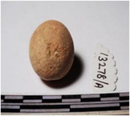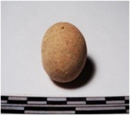 | Description / विवरण | A terracotta sling ball round in shape of smooth surface. |
