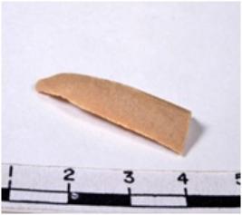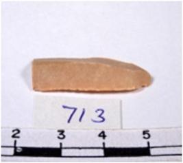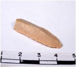 | Description / विवरण | A fragment of a rectangular shaped chert blade showing dorsal sides with sharp cutting edges having smooth surface and triangular section. |
