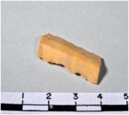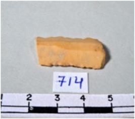 | Description / विवरण | A fragment of a rectangular shaped chert blade showing dorsal sides with sharp cutting edges having smooth surface and triangular section. |