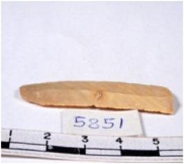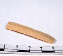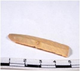 | Description / विवरण | A fragment of a rectangular shaped chert blade showing dorsal sides with sharp edges having smooth surface and triangular section. |