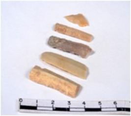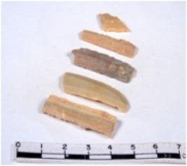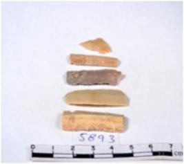 | Description / विवरण | A fragment of a rectangular shaped chert blade showing dorsal sides with sharp cutting edges having smooth surface and triangular section. |