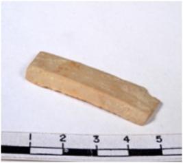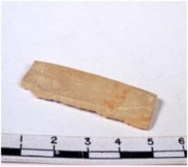 | Description / विवरण | A fragment of a rectangular shaped chert blade showing dorsal sides with sharp cutting edges having smooth surface and uneven section. |