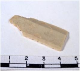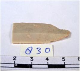 | Description / विवरण | A fragment of a rectangular shaped chert blade showing dorsal sides with sharp cutting edges having smooth surface and triangular section. |