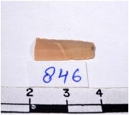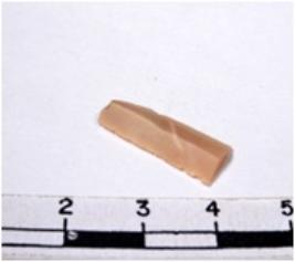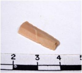 | Description / विवरण | A fragment of a rectangular shaped chert blade showing flat sides with sharp edges having smooth surface and triangular section. |
