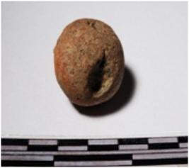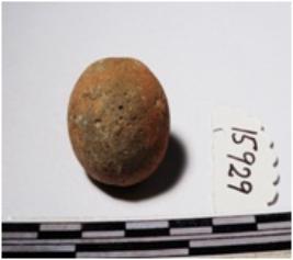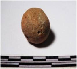 | Description / विवरण | A terracotta sling ball round in shape of smooth surface. |