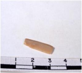 | Description / विवरण | A fragment of a rectangular shaped chert blade showing dorsal sides with sharp cutting edges havnig smooth surface and uneven section. |