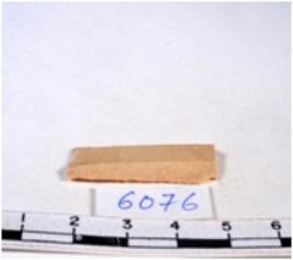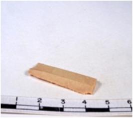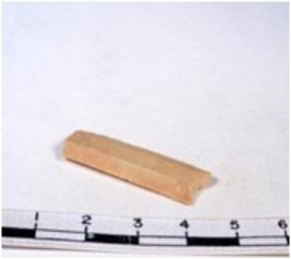 | Description / विवरण | A fragment of a rectangular shaped chert blade showing dorsal sides with sharp cutting edges having smooth surface and triangular section. |