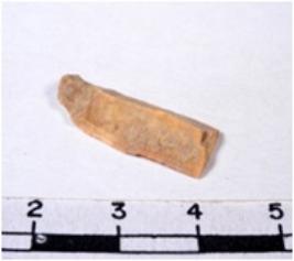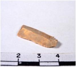 | Description / विवरण | A fragment of a rectangular shaped chert blade showing dorsal sides with sharp cutting edges having smooth surface and triangular section. |