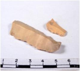 | Description / विवरण | A fragment of a rectangular shaped chert blade showing dorsal sides with sharp cutting edges having smooth surface and triangular section. |