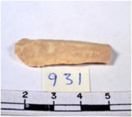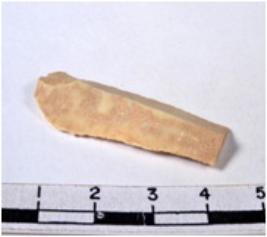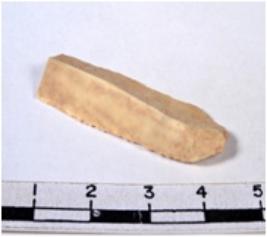 | Description / विवरण | A fragment of a rectangular shaped chert blade showing dorsal sides with sharp cutting edges having smooth surface and triangular section. |