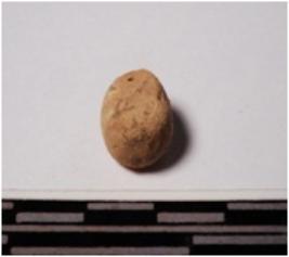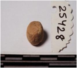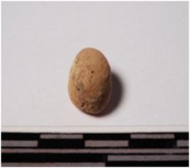| Description / विवरण | A terracotta sling ball, round in section of smooth surface. |