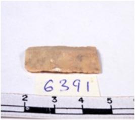 | Description / विवरण | A fragment of a rectangular shaped chert blade showing dorsal sides with sharp edges having smooth surface and triangular section. |